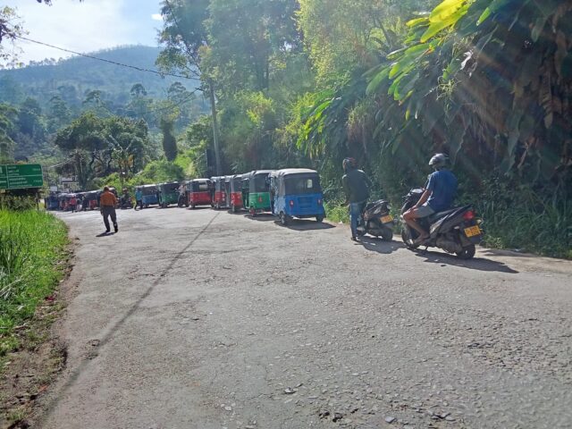 காலை வேளையில் அதிக அளவில் முச்சக்கர வண்டிகள் எரிபொருள் நிரப்பும் நிலையத்தில் நீண்ட வரிசையில் காத்திருந்து தங்களுக்குத் தேவையான எரிபொருளைத் தங்களுக்கு வழங்கப்பட்ட Qr, காட்டி பெற்று வந்தனர்.